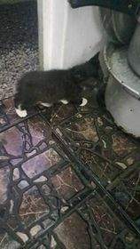 Around 2 months . started eating. Grey, pure black and White and black.