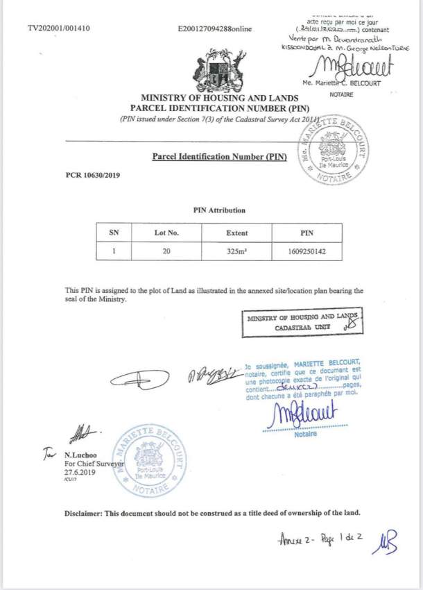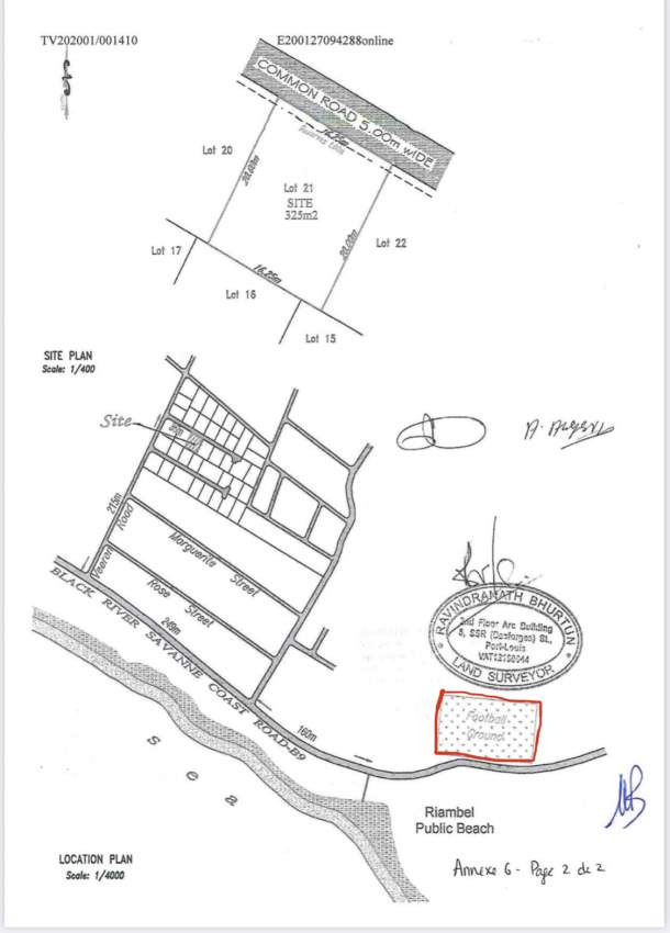 Land of 325 Sq meters situated 215 meters from Riambel public beach