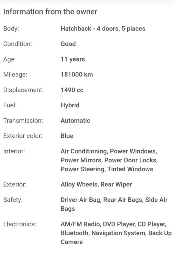 Good condition /automatic /1490cc/mileages 181K/hybrid/