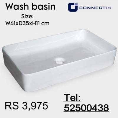 Wash Basin color White Size: W61xD35xH11 cm NB: NO VAT INVOICE WILL BE ISSUED
