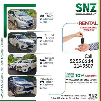 Experience convenience and comfort when you book a car rental in Port Louis with SNZ . Reliable...